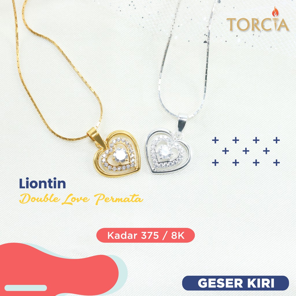 Jual Kalung Emas Asli Italy Double Love Permata Torcia Kadar 375 Indonesia Shopee Indonesia